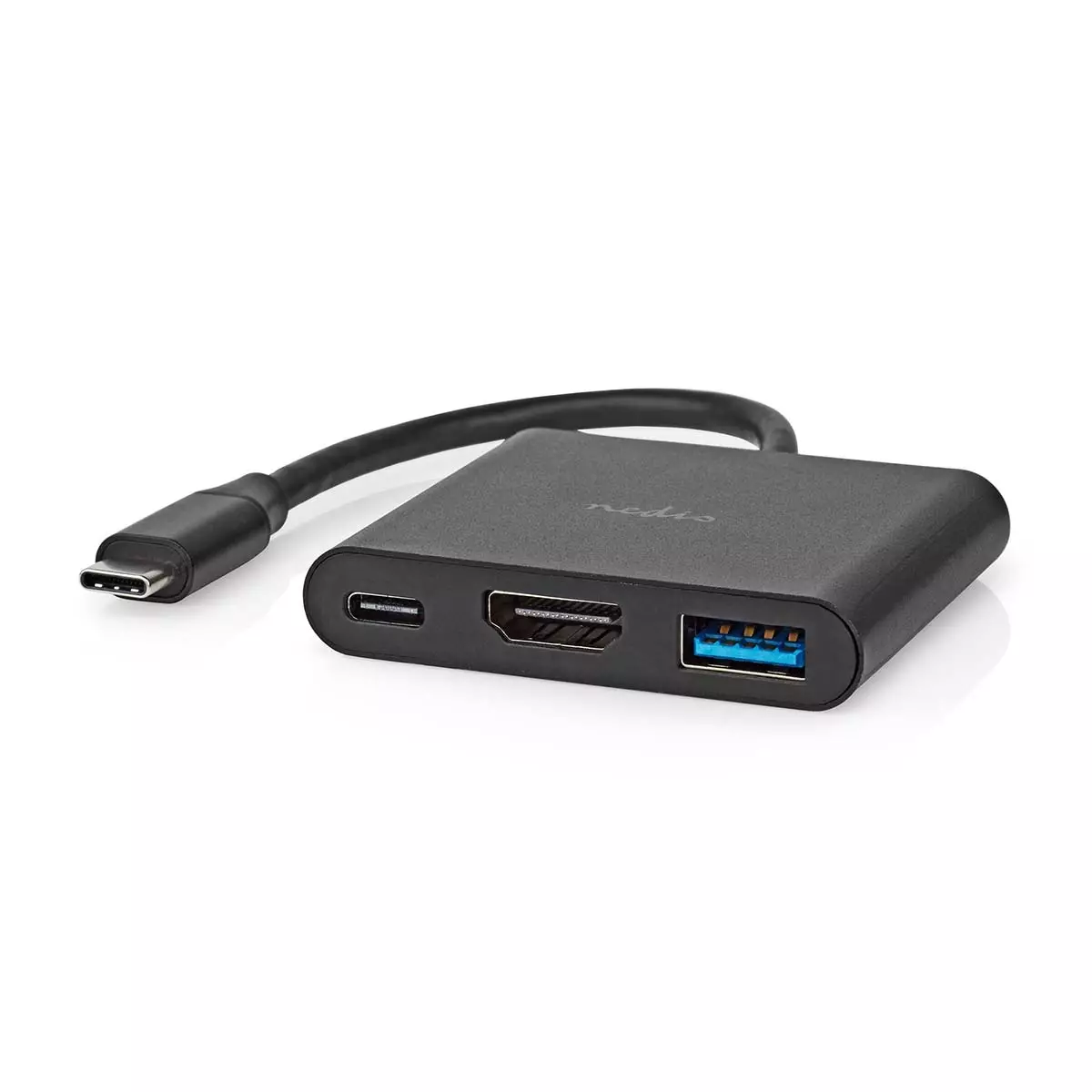 Moniporttinen Nedis USB 3.2 Gen 1 -sovitin voidaan liittää mihin tahansa USB-C™-liitännällä varustettuun laitteeseen. Näin voit yhdistää jopa kolme USB-laitetta yhden portin avulla. HDMI™-lähtö tukee 4K-tarkkuutta 30 Hz:n taajuudella. Moniporttisessa sovittimessa on myös USB-A- ja USB-C™ 3.2 Gen -portit, joissa on 5 Gb/s:n tiedonsiirtonopeus. USB-C™-portin lähtöteho on 7,5 W.